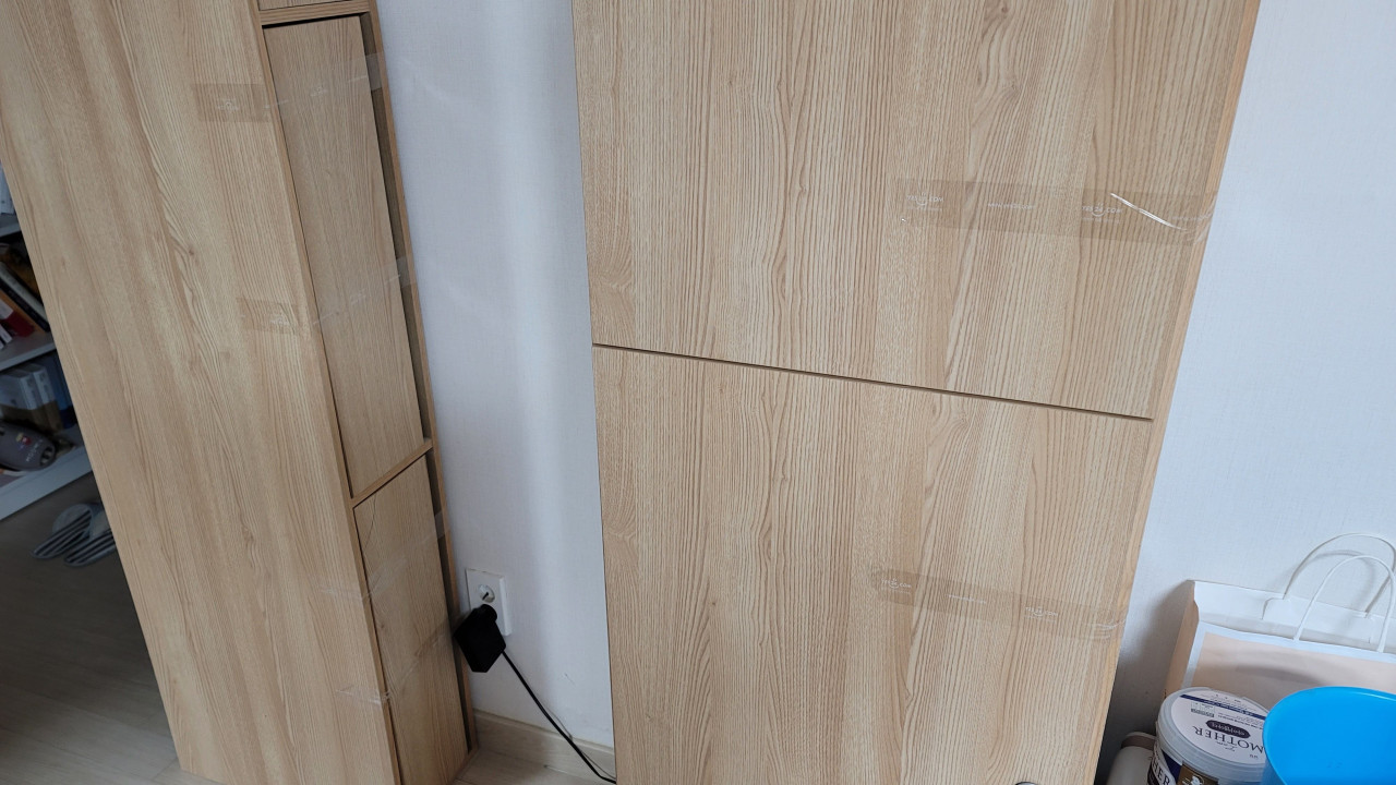 분리한 침대를 일단 임시로 세워놓습니다.